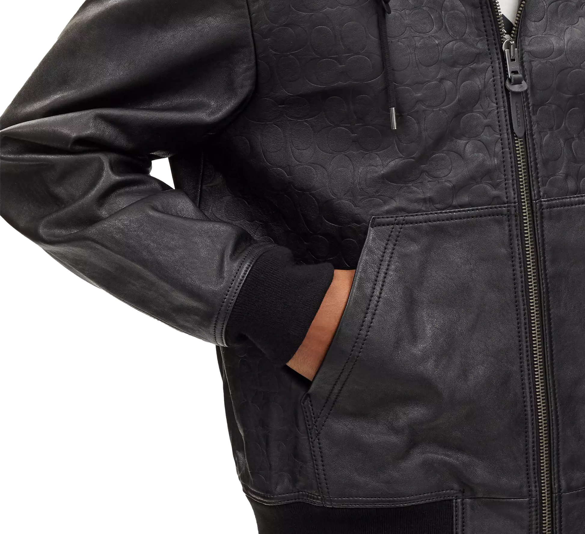 COACH Men's Embossed Leather Trainer Hooded Jacket - Black
